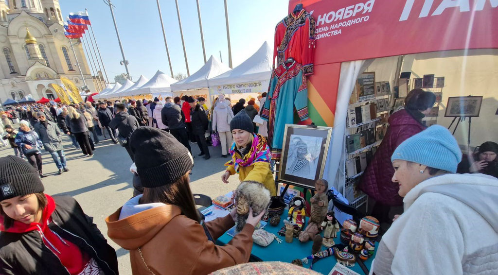 Приморская краевая публичная библиотека им. А. М. Горького в День народного единства вышла на главную площадь Владивостока познакомить земляков с мудрым словом писателей малочисленных народов Севера и Дальнего Востока и показать объединяющую силу книг.