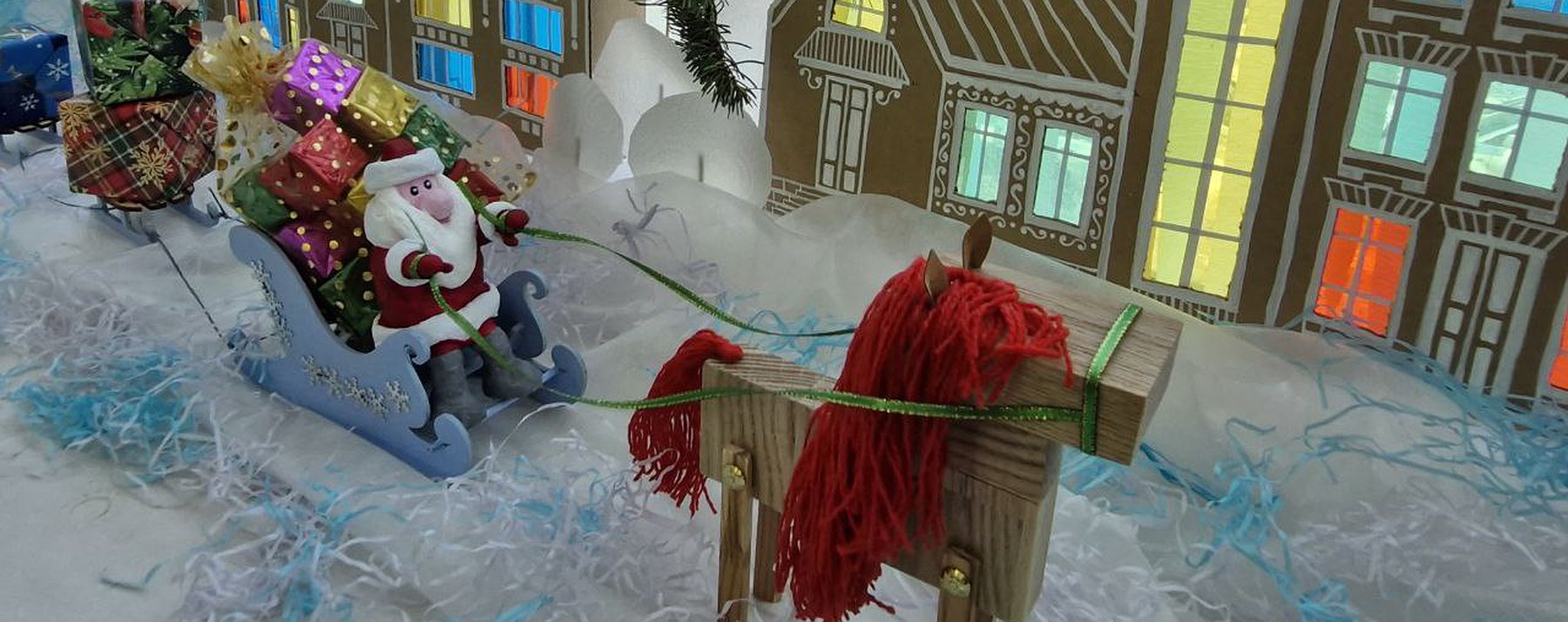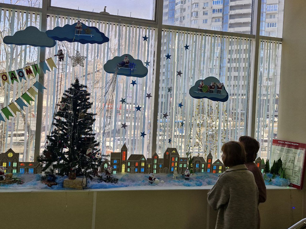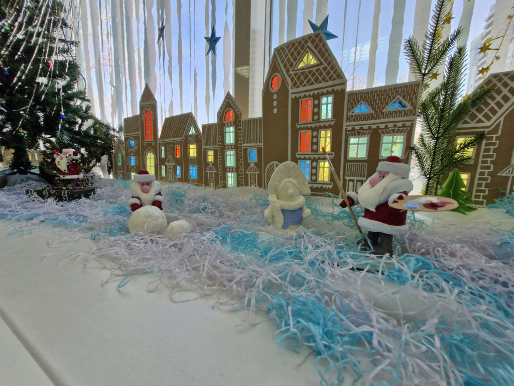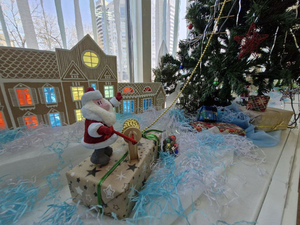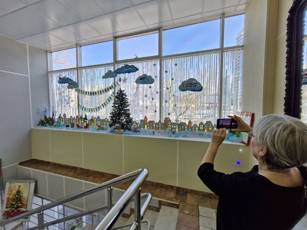 Его-то и сотворили в Краевой библиотеке – здесь на пространстве всего практически шестиметрового оконного пролёта холла второго этажа кудесница Виктория Владимировна разместила зимний городок Дед Морозов.