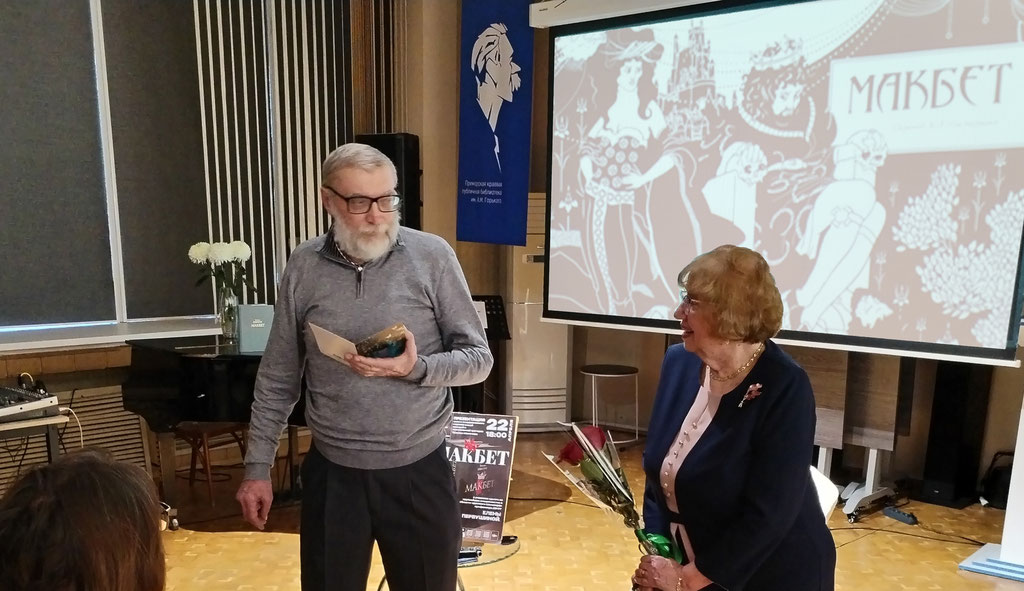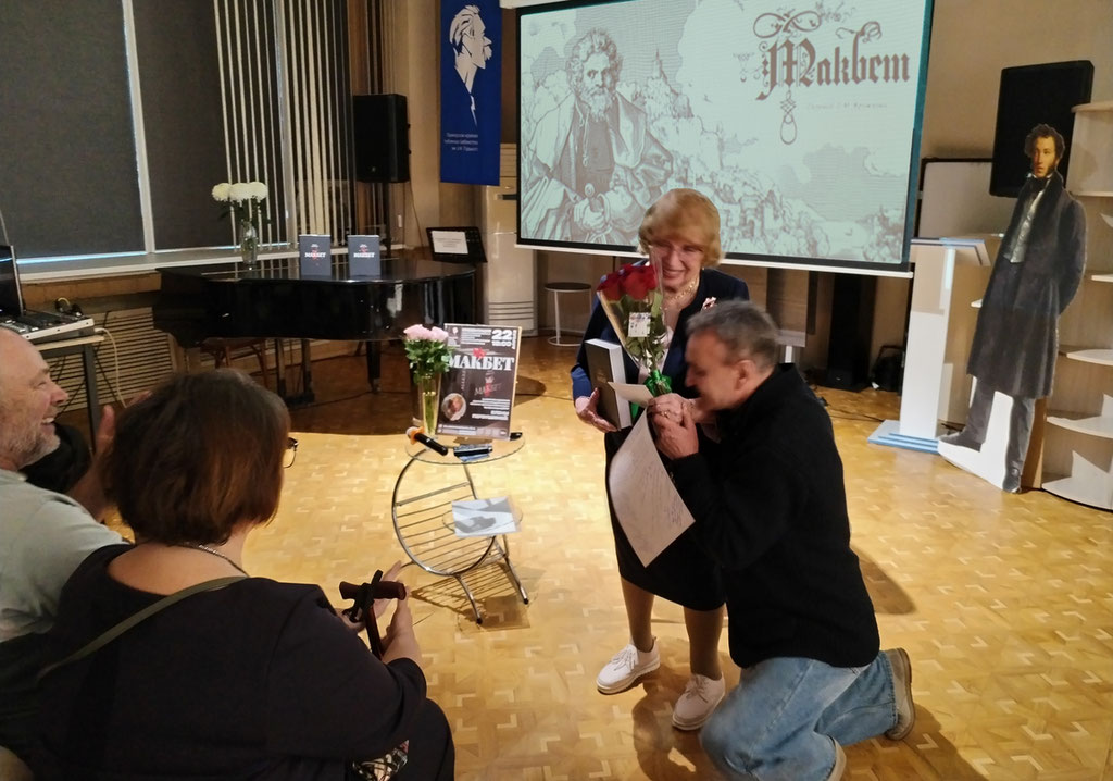 В заключение вечера Первушина передала в дар Горьковке новый том академического «Макбета». А когда церемония закончилась, публика потянулась не к выходу, а к ней – кто с цветами, кто с конфетами, а кто и со стихами ей посвященными.