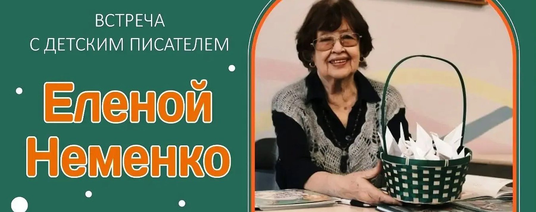 Приморская краевая публичная библиотека им. А.М. Горького приглашает читателей 13 апреля на встречу с известным дальневосточным писателем Еленой Викторовной Неменко.